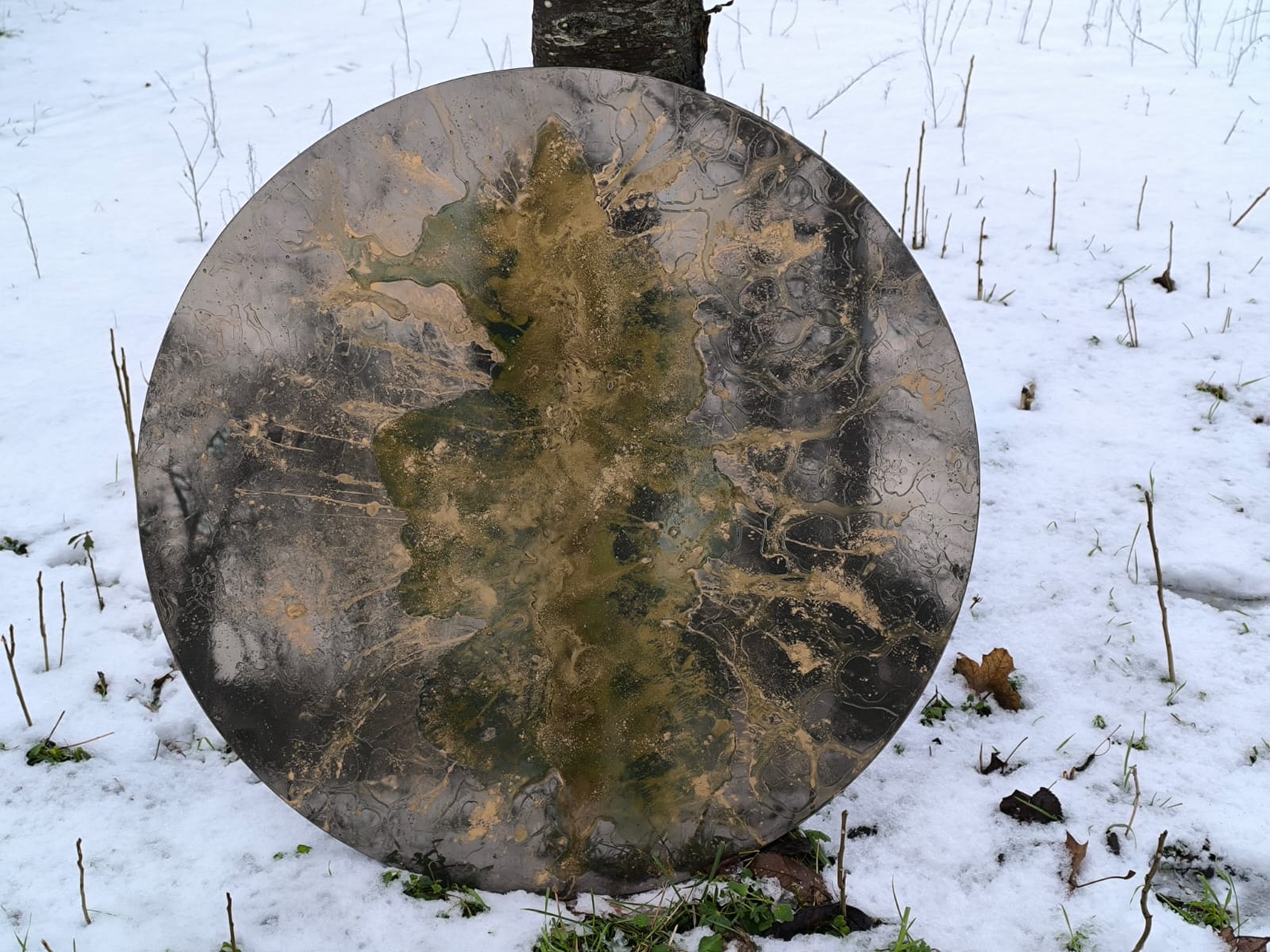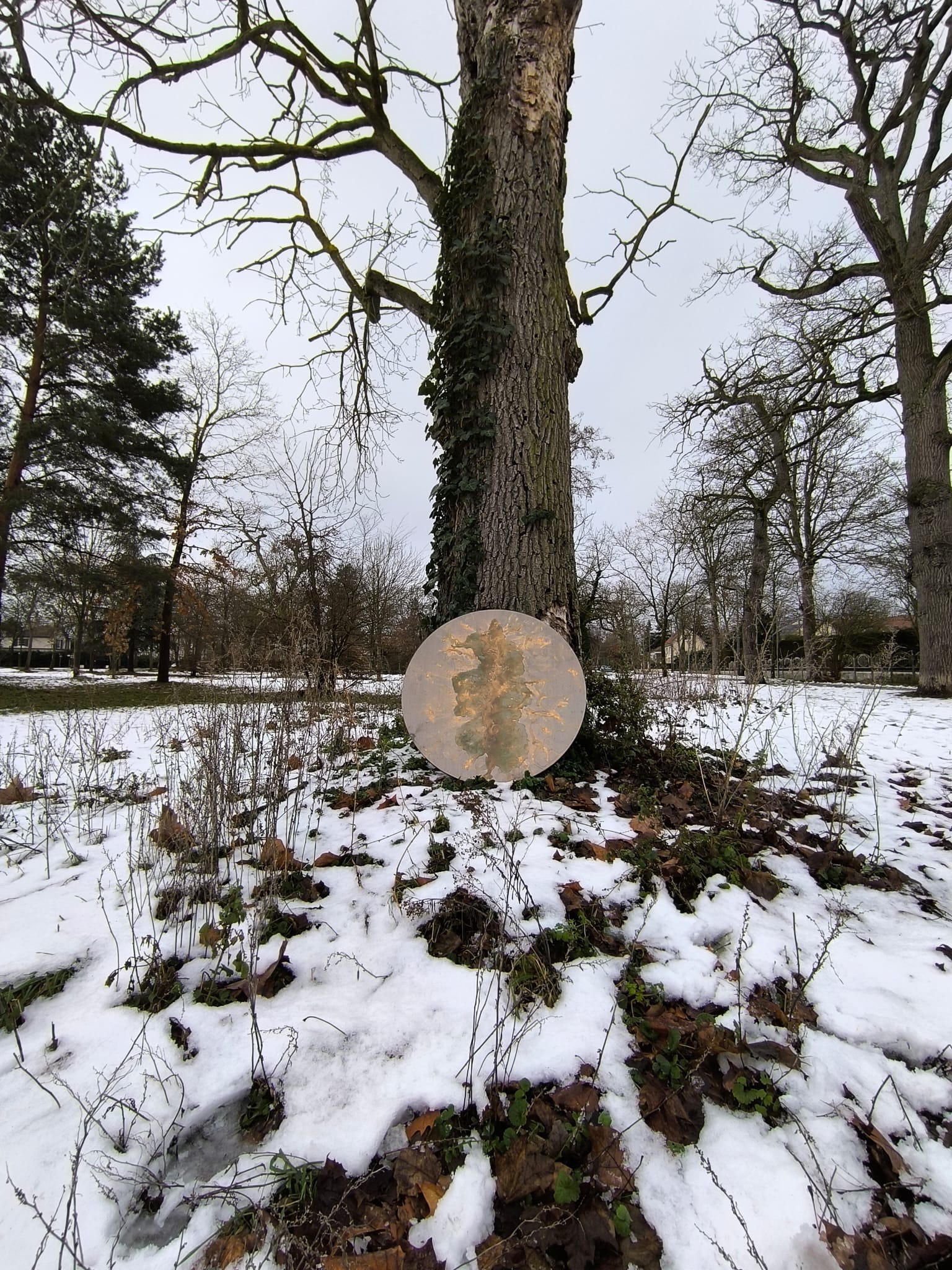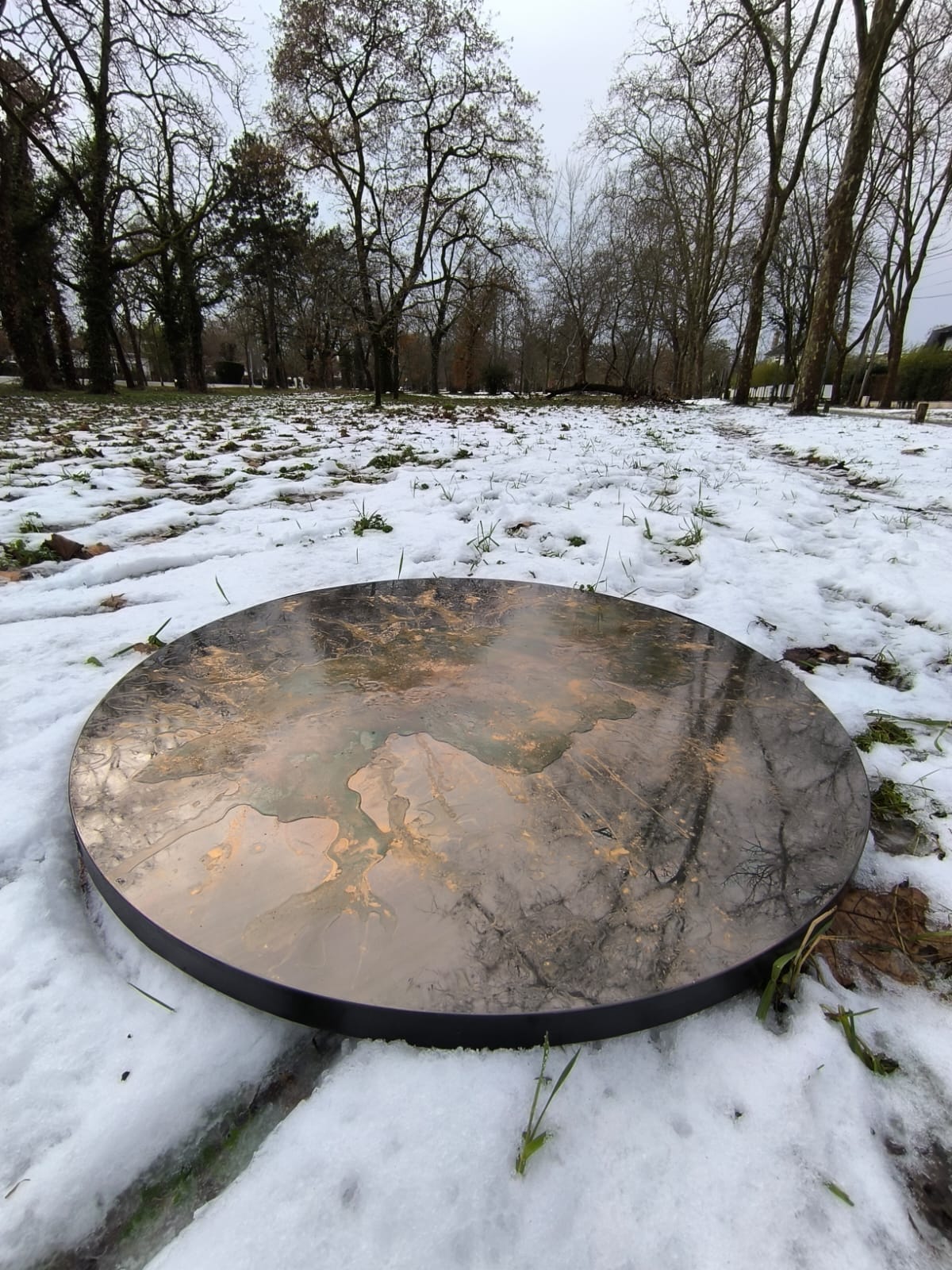 ⌀ 80 cm · Fibres réfléchissantes fusionnées, pigments précieux et or 24 carats · 2023