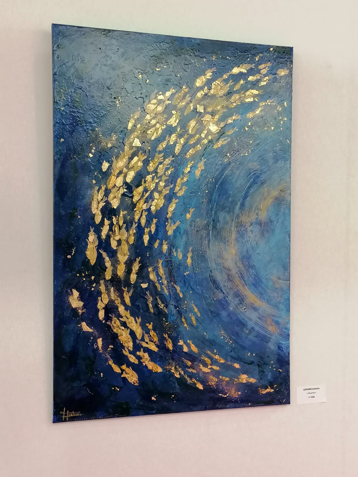 Adélaïde y présente 3 œuvres de sa série actuelle sur l’intelligence collective et les minéraux précieux.