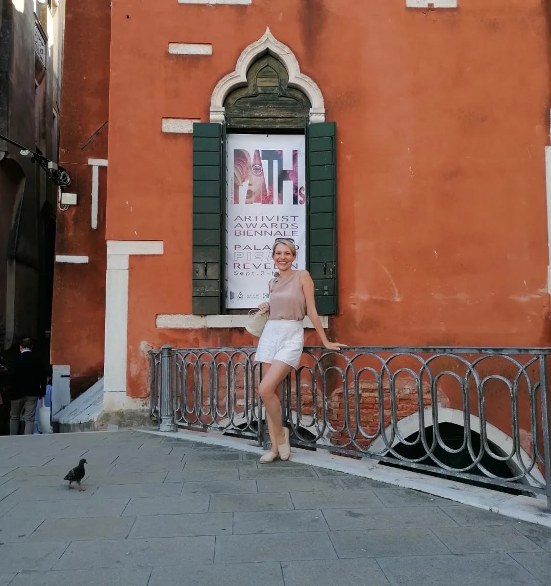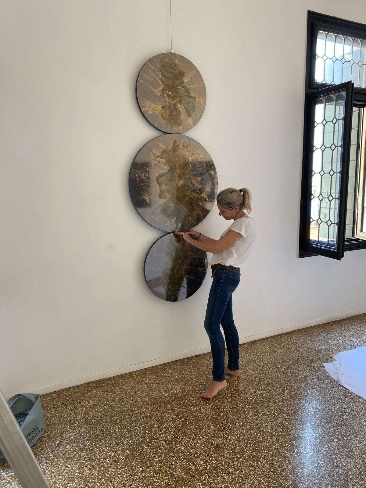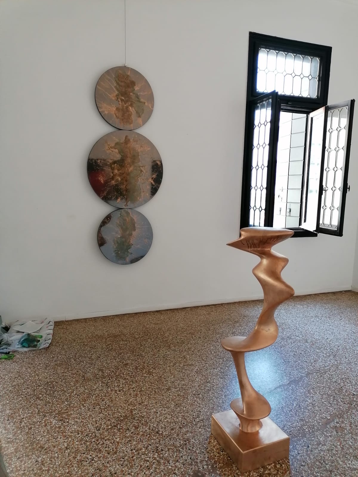 Adélaïde Leferme a exposé son œuvre Trinité or lors de la Biennale de Venise, du 4 septembre au 3 novembre 2024, dans le cadre de l’exposition collective PATHs, au Palazzo Pisani-Revedin.